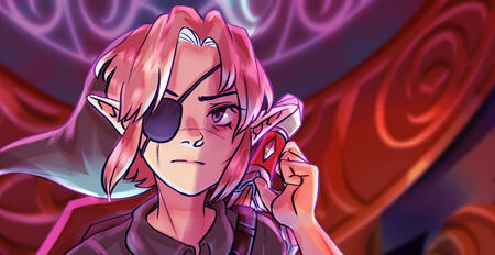 Eventually, in a scuffle with some bandits, Link lost his right eye- barely managing to drag himself to a nearby village and recieve treatment for it. The doctor, a man with violet hair and red eyes, having heard of Link's reputation, warned him to head home so as to not "lose what he had left of his childhood."